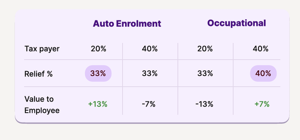 Tax Efficiency: Contributions to occupational pension schemes provide tax relief that can benefit higher earners significantly, compared to the standardised 33% government contributions in AE. Additionally, employer contributions are eligible for deduction under corporation tax.