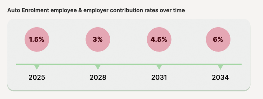 Starting in January 2026, Irish employers will be required to automatically enrol employees aged between 23 and 60 who earn over €20,000 annually in the government-led 'My Future Fund' scheme (run by the newly established National Automatic Enrolment Retirement Savings Authority).