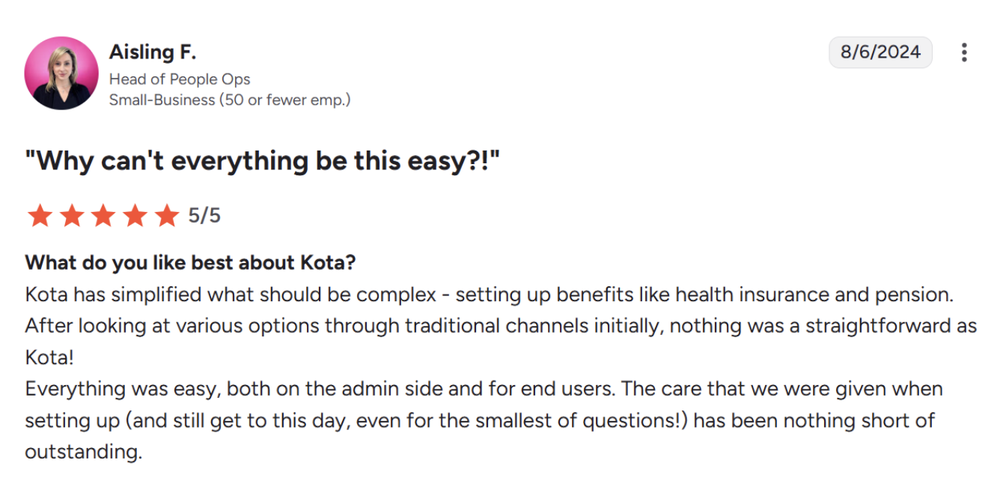 Kota is different - it's built as a modern broker alternative that removes all the work involved in running benefits off your plate.